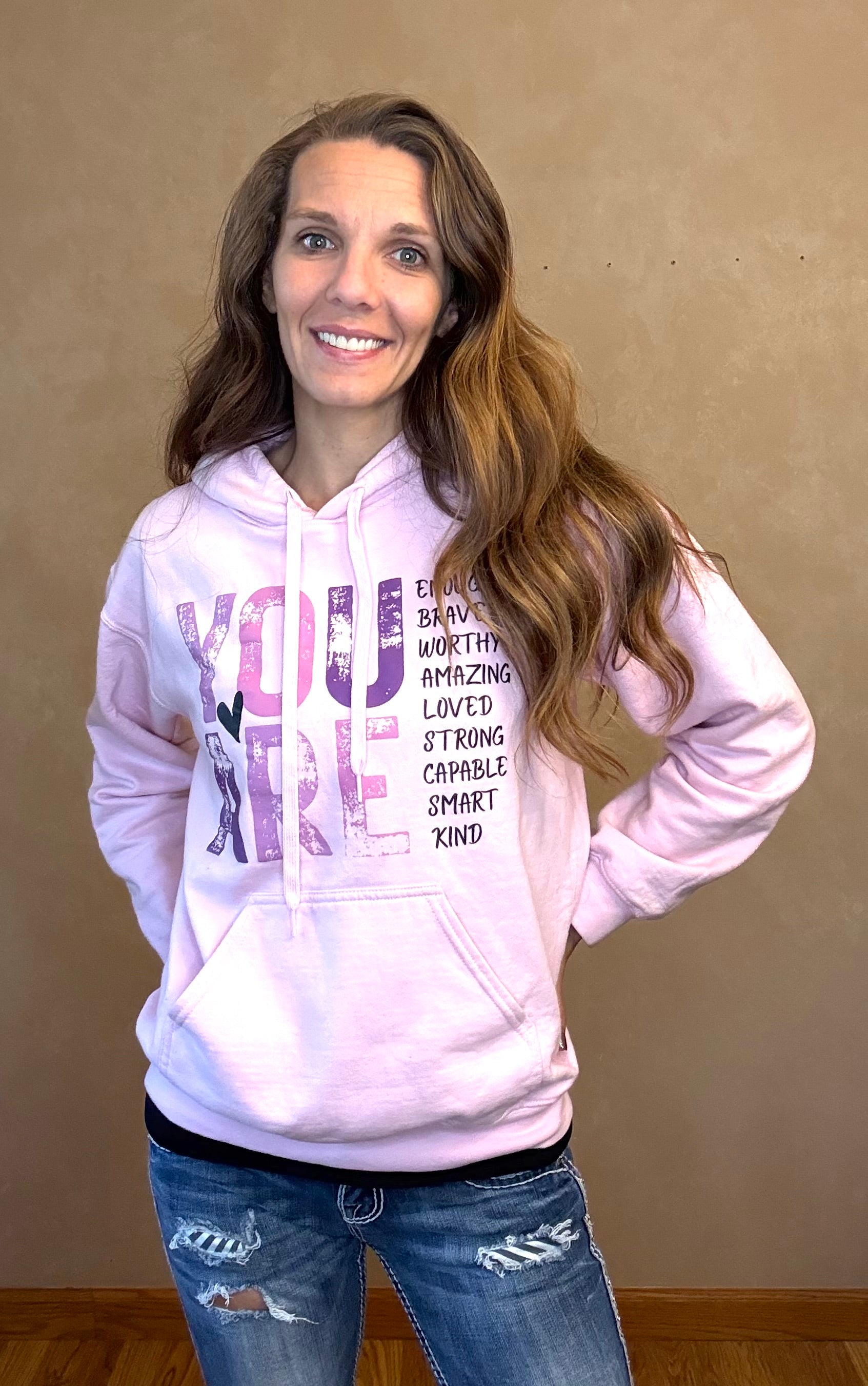 Wrap yourself in a reminder of your worth. Our "You are enough" graphic top is more than just cozy-its a message every woman deserves to hear daily. With powerful affirmations like brave, worthy, strong, and loved, this soft everyday essential was made to uplift and inspire.