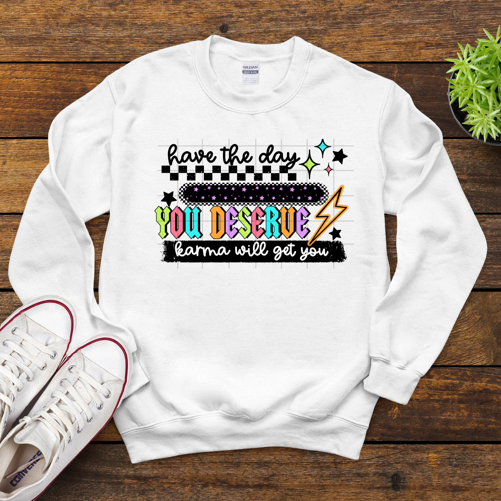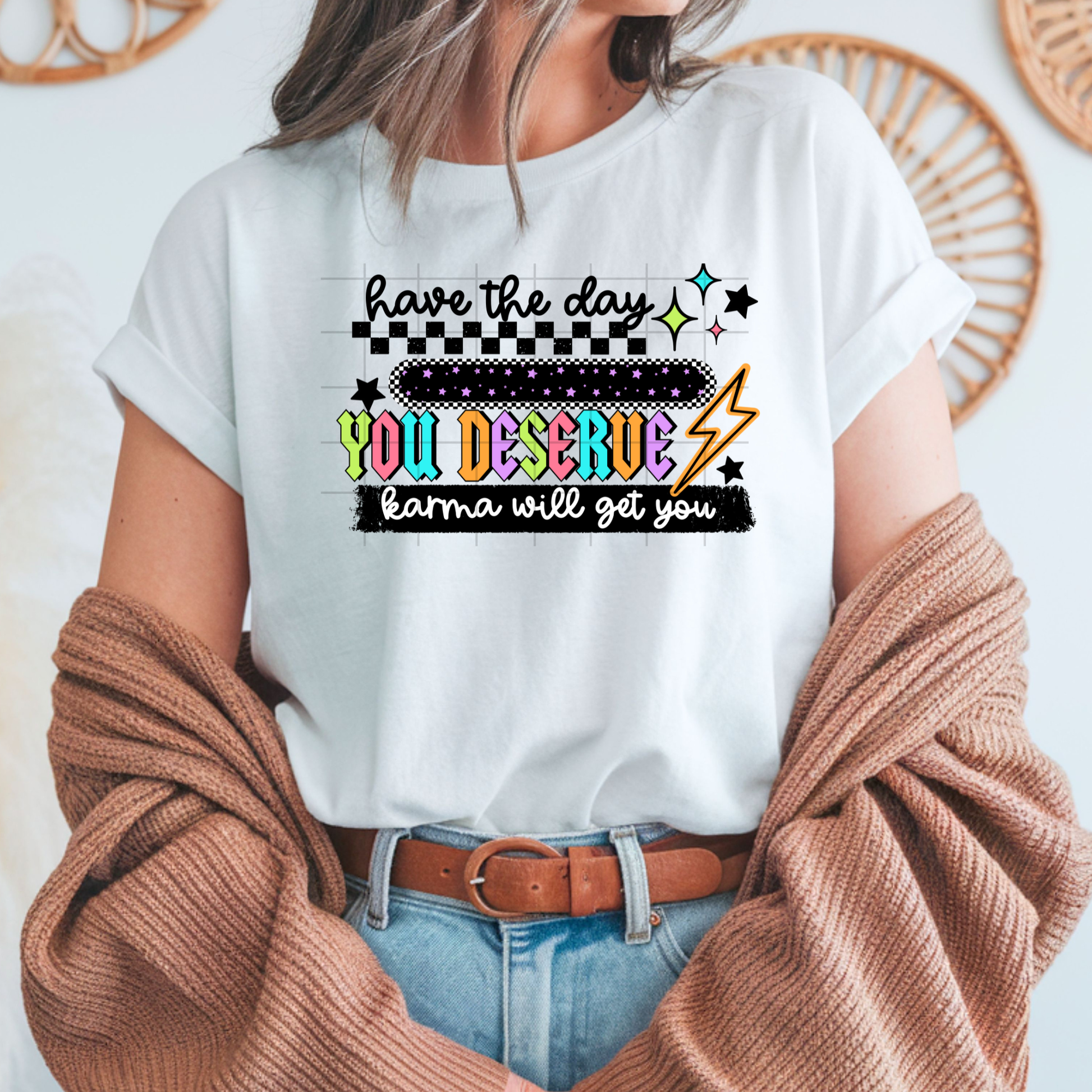 Sweet… with a side of don’t mess with me. This colorful retro-inspired tee says everything you’re thinking without you having to say a word. With playful stars, bold lettering, and a pop of attitude, it’s the perfect statement piece for anyone who believes karma always circles back.