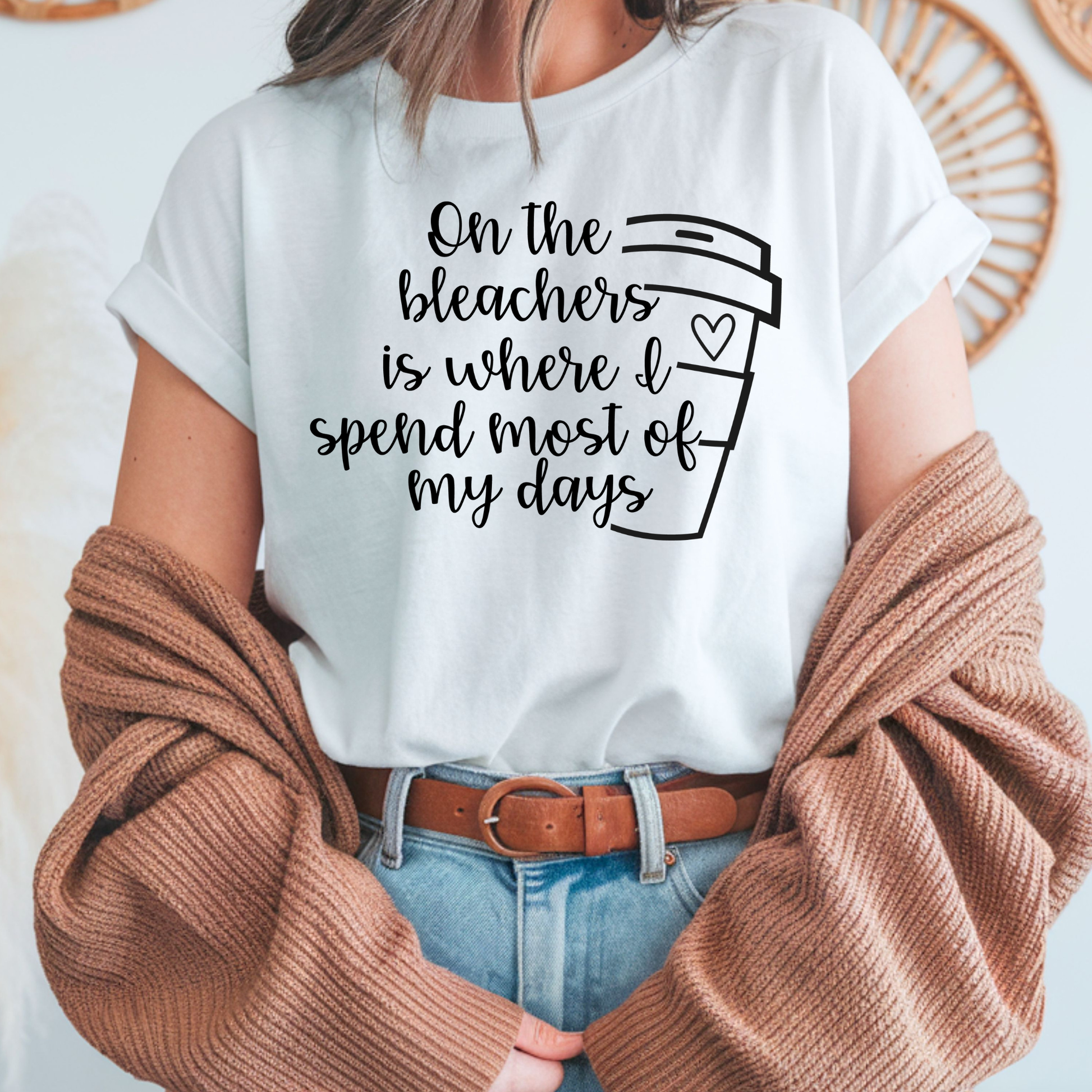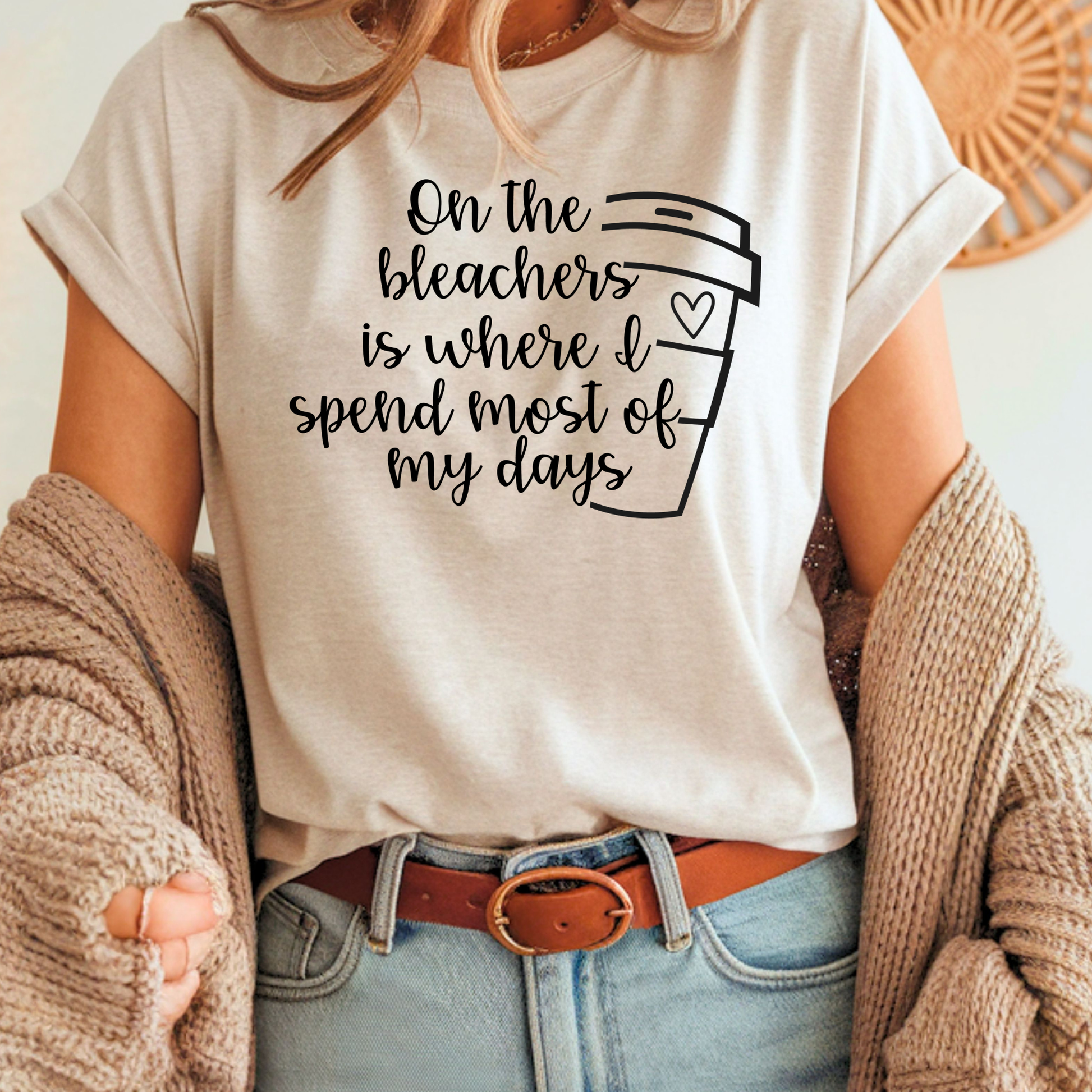 Our “On the Bleachers Is Where I Spend Most My Days” shirt is the perfect blend of comfy + cute for every sports mom who practically lives at the field, court, or track.