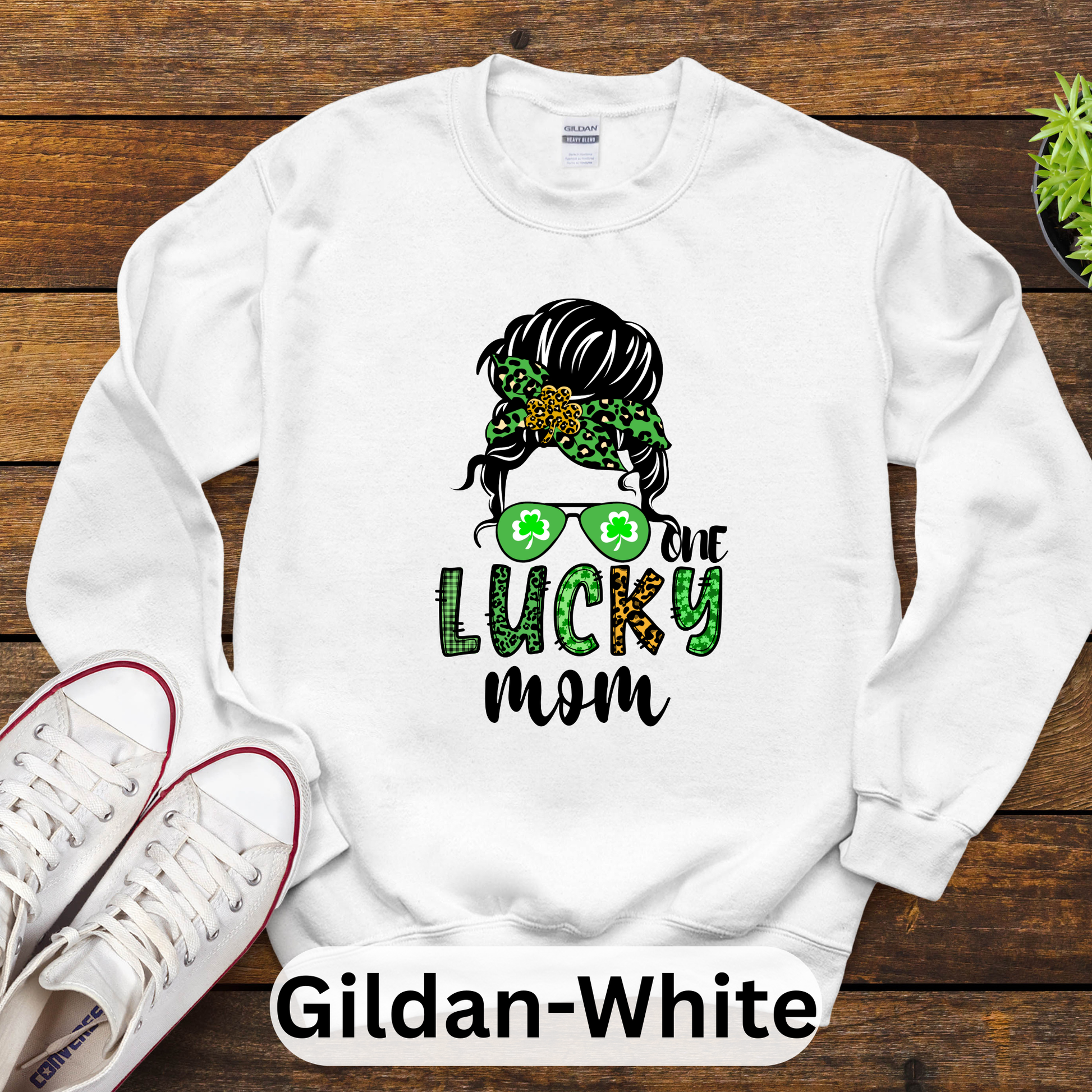 Your favorite mom bun graphic with a St Patrick's Day theme.