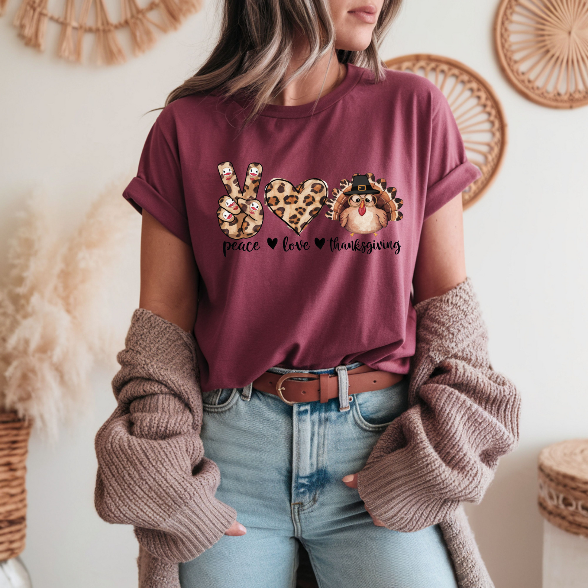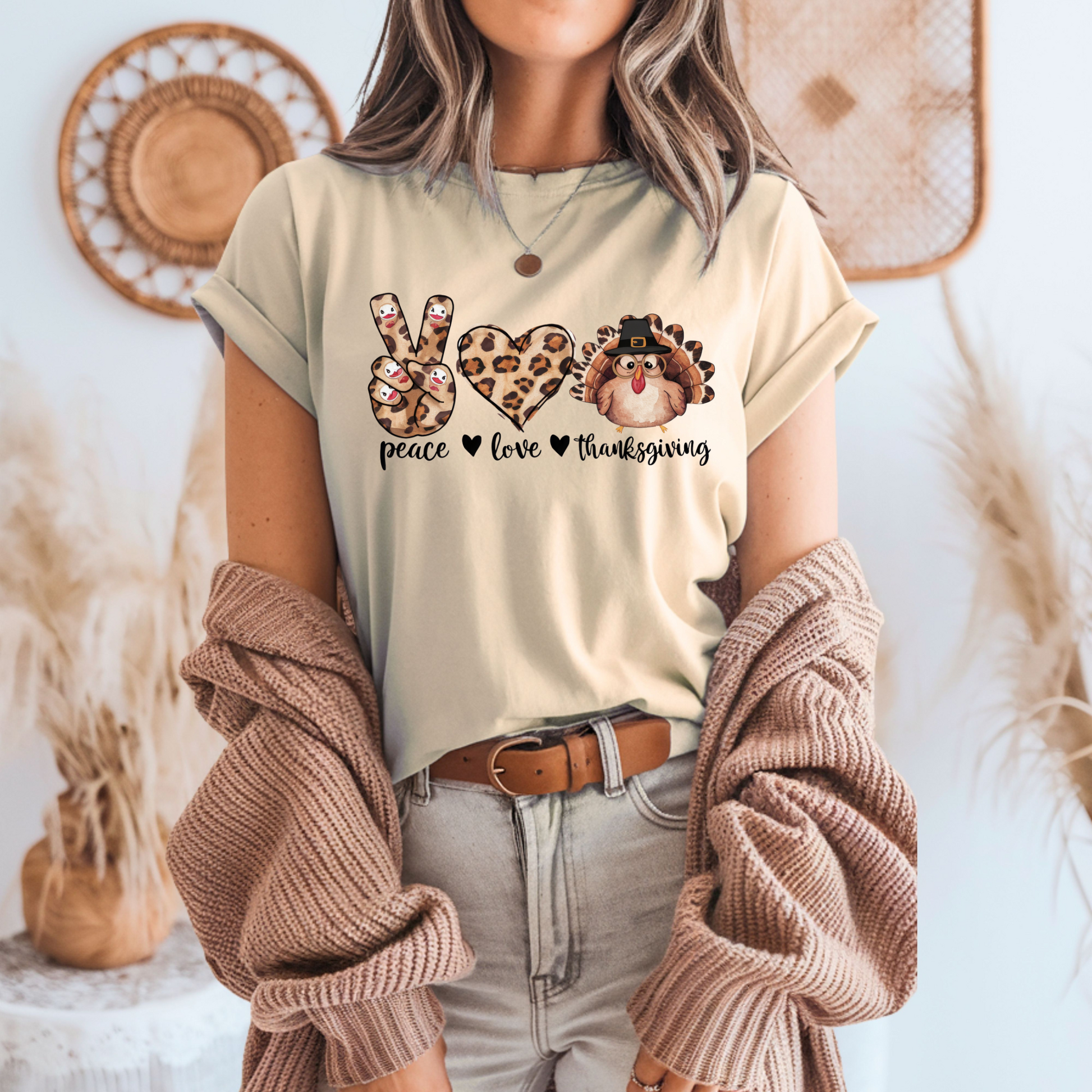 - Adorable peace love and turkey graphic with leopard print