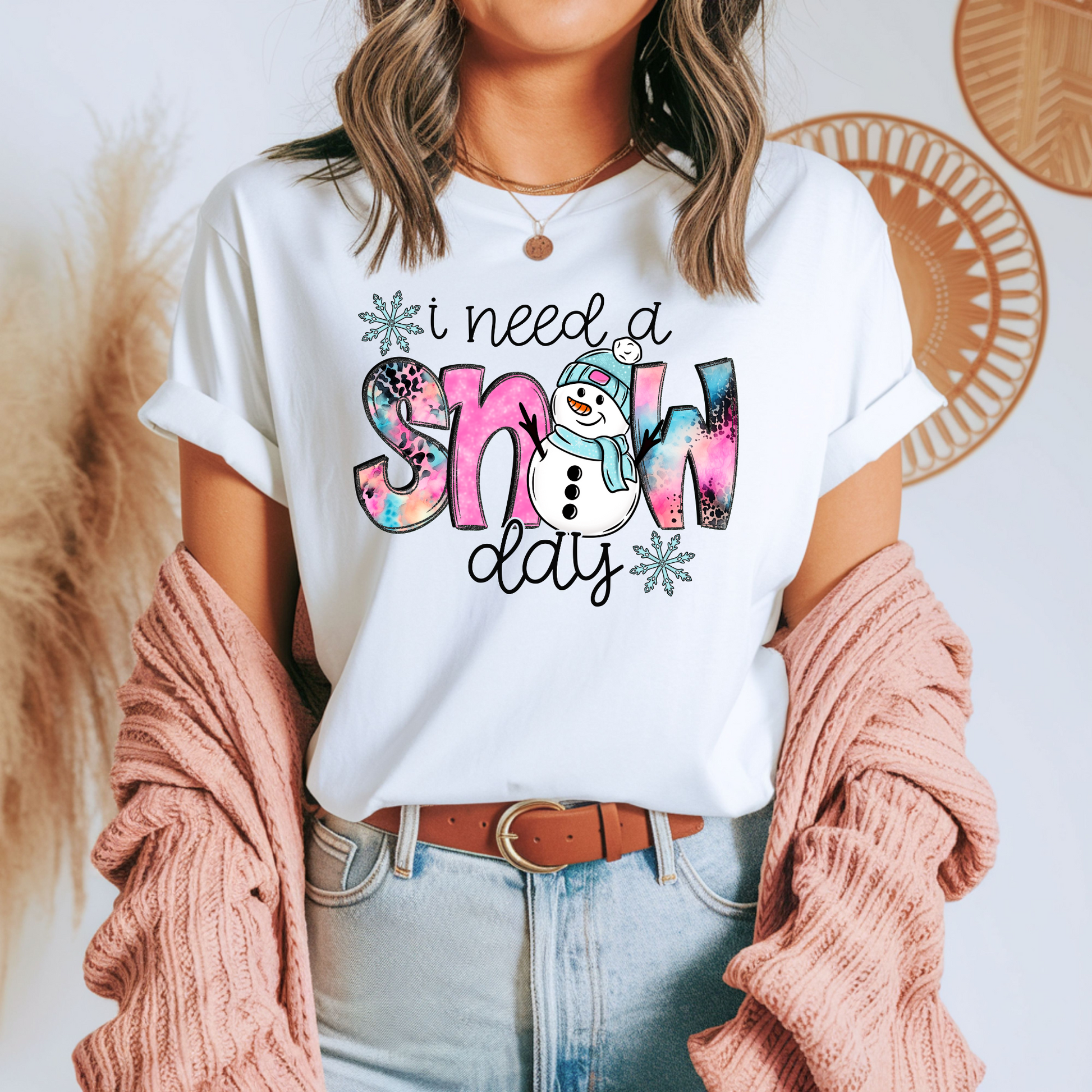 Adorable “I Need a Snow Day” graphic with cheerful snowman detail